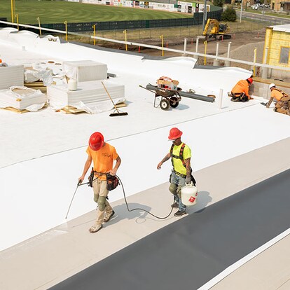 EverGuard® TPO Quick Spray Adhesive is a sprayable, solvent-based contact adhesive useful for bonding smooth TPO membranes to various substrates.